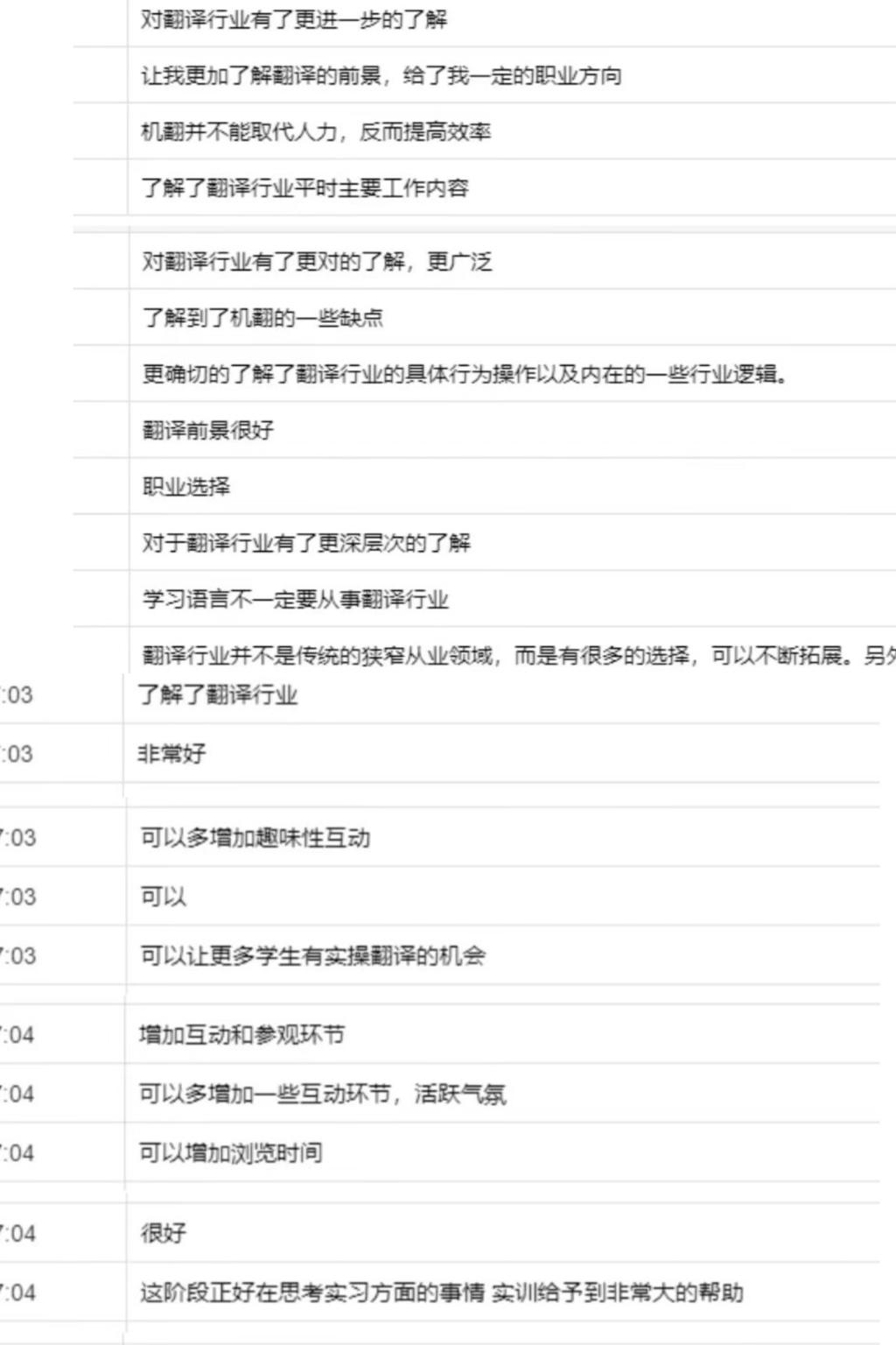 以上多批次大规模实习实训活动是富有意义和价值的真实场景实践活动和校企交流,也是一系列实用的学业职业规划指导。通过与行业龙头企业语言桥公司专业导师的交流和指导,同学们不仅拓宽了视野,还获得了宝贵的职业环境和业务操作体验,以及学业职业建议。这对于同学们未来的学业职业发展具有重要的指导作用。同时,这次活动也加深了校企之间的合作与联系,为未来产教融合的深入广泛发展提供了更多的机会和可能性。(责编 杨蓓 审稿 许庆荣)