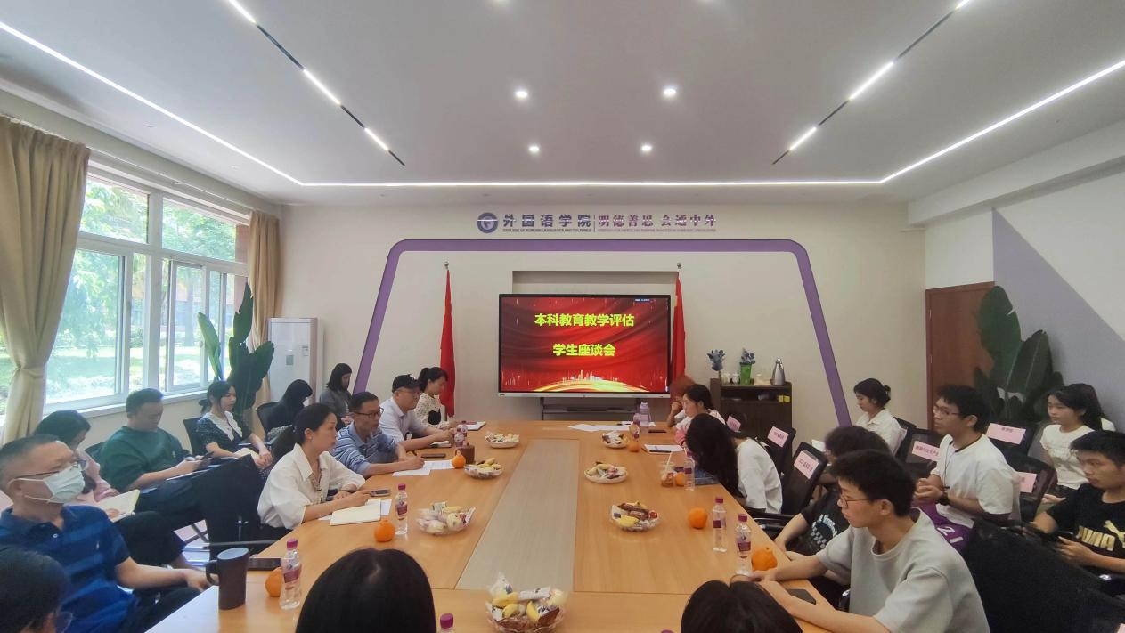2024 年5月 14日下午13:30,外国语九游官方网站在2110会议室开展了本科教育教学评估学生座谈会。参加会议的有外国语九游官方网站党委书记许庆荣、主持工作副院长白杨、教学副院长杨儒平、各系部、科室主任及全体辅导员。同时,会议还邀请了来自九游官方网站学生会、社团、各个年级不同专业的学生代表、及机械工程九游官方网站等8位兄弟九游官方网站学生代表参加,大家齐聚一堂,为本科教育教学建言献策。
