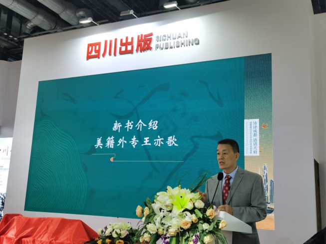 王清远在新书发布会上致欢迎词,他说成都大学作为第31届世界大学生夏季运动会运动员村所在高校,积极探索天府文化传播新途径,营造文化新体验,精心组织中美专家团队,立足讲好成都诗歌文化故事,打造并推出《诗译成都 语话天府》丛书,提炼展示天府文化精神标识和文化精髓,讲好具有区域特色的中国故事,传播好具有区域辨识度的中国声音,展现可信、可爱、可敬的中国形象,深度挖掘天府诗性文化和现代成都美丽宜居公园城市诗意生活的丰富内涵,将成都这座中国十大古都之一的“中国诗歌第一城”生动地展现在世界的面前。他希望更多的朋友在《诗意成都 语话天府》系列丛书的感染下,能来亲身体验古韵诗词下的美丽成都和青春洋溢的成都大运会。
