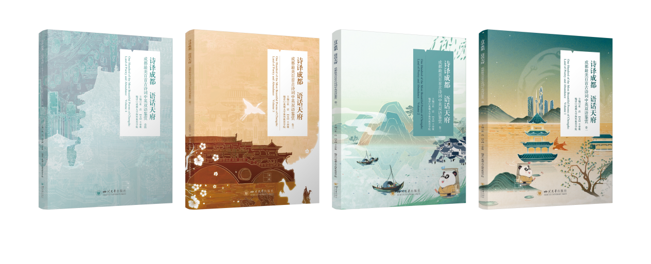 该套丛书是教育部中外语言交流合作中心2021年度国际中文教育创新项目和成都大学2021-2023年人才培养质量和教学改革重点项目的成果,由我校海外教育九游官方网站和外国语九游官方网站国际中文教育与国际传播研究团队完成。这套丛书基于成都大学原副校长杨玉华博士编著出版的《成都最美古诗词100首详注精评》(该作品由成都时代出版社于2020年10月出版),以中英文双语鉴赏编译为内核,融入100幅中国传统书法、100个中英双语音频、20个视频、极富成都想象的封面插图设计等元素,立足讲好成都诗歌文化故事,生动介绍成都独特的风土人情、诗意生活和地域魅力,致力让天府文化走向世界。