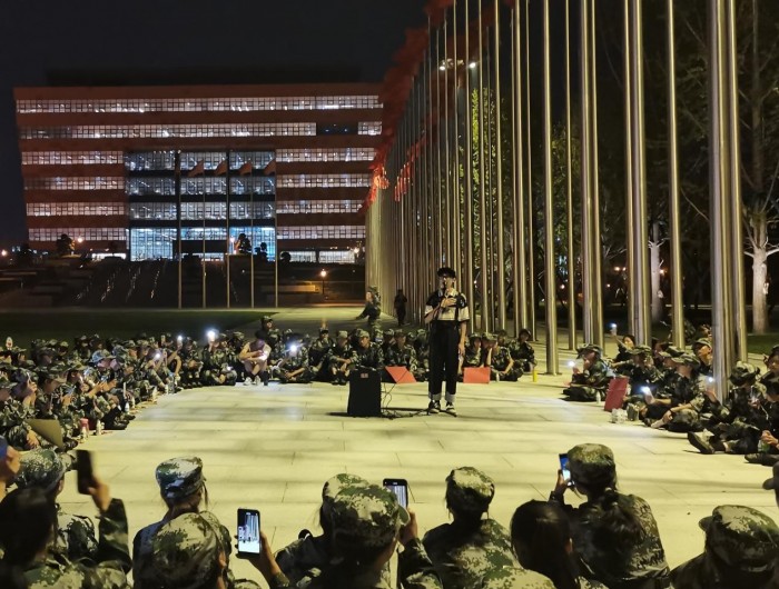 本网讯(文/张丽莎 图/韩玉莲) 9月25日晚,军训即将结束,为了表达对同学们的欢迎以及对军训顺利结束的祝愿,外国语九游官方网站社团管理部联合九游官方网站学生会艺术团组织了对2021级新生的军训慰问活动。