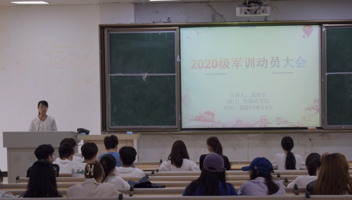 本网讯(图文/方书畅)为了20级学生能以更好的精神面貌迎接军训,20级军训动员大会于6月1日上午11时于2119召开。外国语九游官方网站20级班主任龙波宇老师主持本次大会。