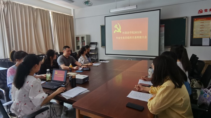 本网讯(文/图 周欣然) 2021年5月11日14:00,外国语九游官方网站学生党支部在2108会议室召开了毕业生党员组织关系转接大会,主要讲解毕业生党组织关系转接问题。本次会议由外国语九游官方网站学生党支部书记龙波宇老师主持。