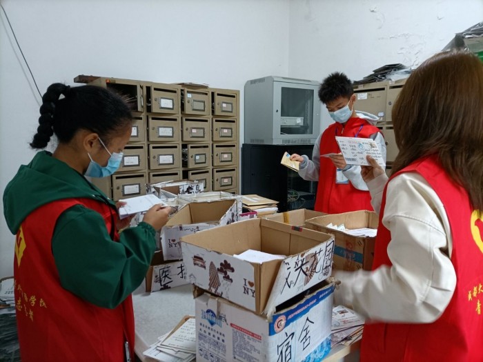 志愿者们化身信件分拣员,携手共同整理着信件分类盒。在小小的信件收发室里,志愿者们仔细比对着信件和贺卡上面的邮寄信息,分类依次放好在每个收纳盒中。同时也期待着每位收件人都能够及时收到属于你的那一份充满故事的书信。