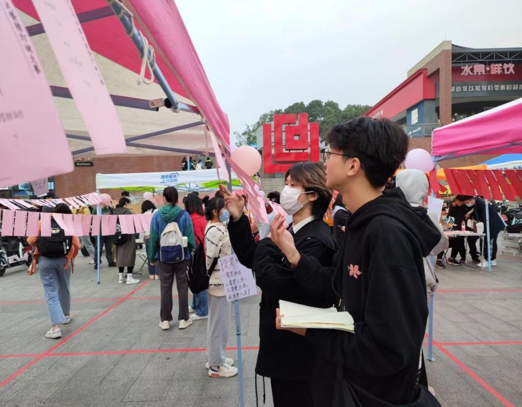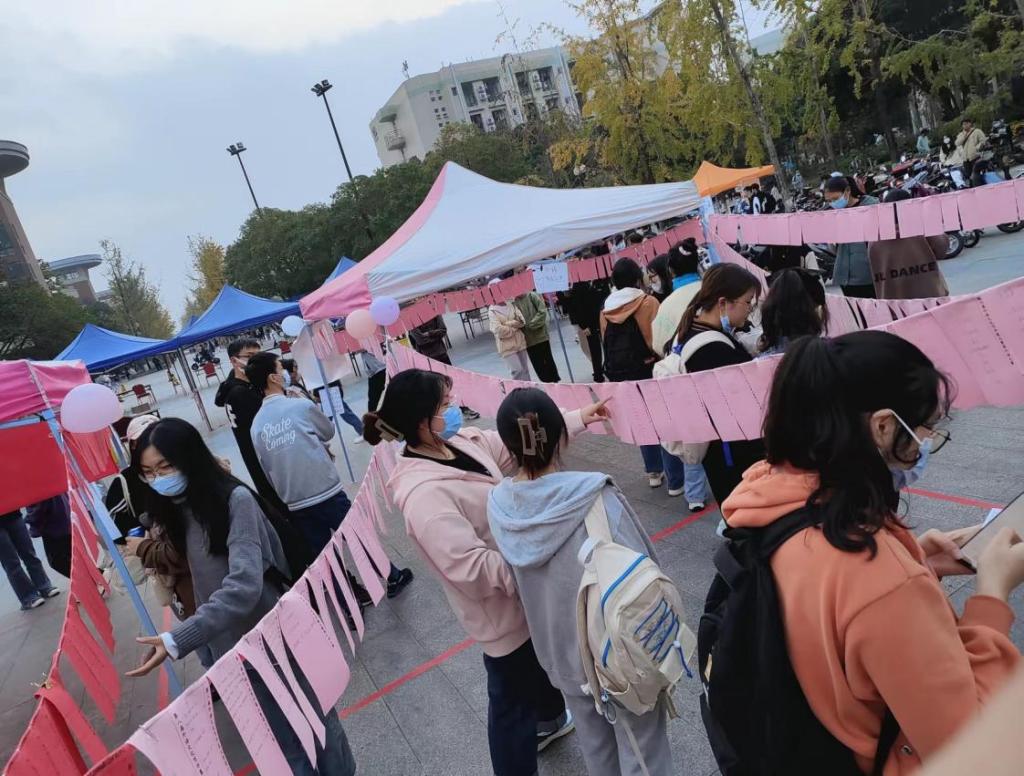 五彩缤纷的谜语词条高高挂,妙趣横生的灯谜游戏让同学们不由地驻足流连,洋溢着浓浓的外语文化节气氛。参与活动的同学们领取积分卡,自行选择题目回答,然后于记分处核对答案,最后由工作人员进行统计排名,并根据积分为同学们颁发奖励。为了公平竞争,活动全程不可使用手机查询答案。大家也时刻牢记社会主义核心价值观,诚信作答。现场答题的同学激情满满,或独自沉思,或与队友激烈讨论。来来往往的学子不由得驻足,也纷纷加入了这场热火朝天的猜灯谜大赛。乘“十三五”圆满收官、建党百年的东风之际,同时为即将临来的大运会做准备,此次猜灯谜大赛特地设定党史知识模块与大运会常识模块,以加深同学们对党的历史的了解,强化为大运会服务的主人翁意识。