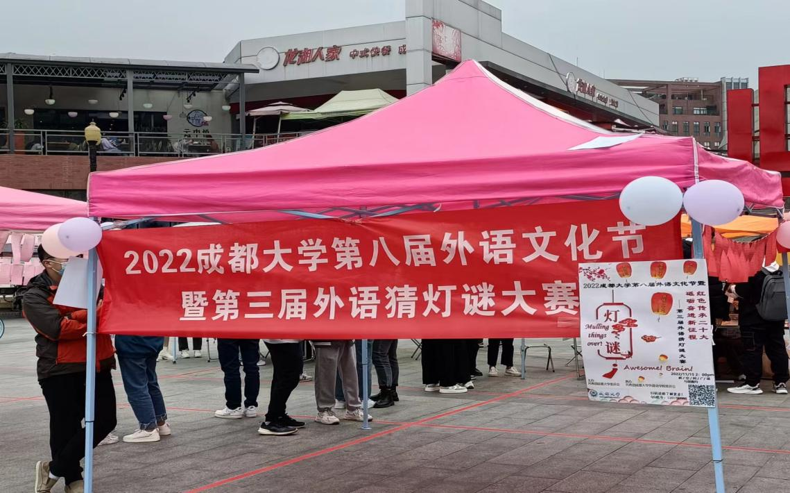 本网讯(文/夏萃 图/先锋队)为氤氲校园国际文化氛围,提升学生外语能力及人文素养,推动文化交流互鉴,由共青团成都大学委员会主办,九游官方网站承办的成都大学第八届外语文化节开幕式暨红色传承二十大,砥砺奋进新征程”外语猜灯谜大赛于11月13日下午于新空间广场举行。以有趣、熟悉的方式来转换语言思维,从而达到巩固语言基础以及深入了解大运、世乒赛、二十大的效果。通过对传统文化“猜灯谜”形式的创新,让大运知识、世乒赛知识、二十大精神涌现在同学们身边,以国家城市、灯谜、音乐、电影知识为辅,集外语语言、文化研究性、学术性、趣味性于一体,不仅能激发语言学习者的兴趣,还能达到喜迎大运,共庆二十大的目的。通过有趣的思考,共同体验一场外语语言的头脑风暴!来自全校各九游官方网站近500名同学参与活动。