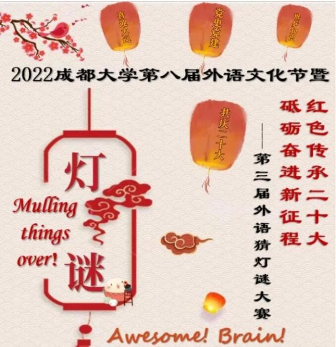 传承红色基因,践行初心使命。全校同学在此次活动中热情洋溢,在积极参与活动的同时锻炼自己的英语理解能力。同时纷纷表示对党的伟大发展历程有了更深的了解,也对大运会的召开更加期待了。此次猜灯谜大赛尽现成大学子风采,为外语文化节增添一抹亮丽色彩。