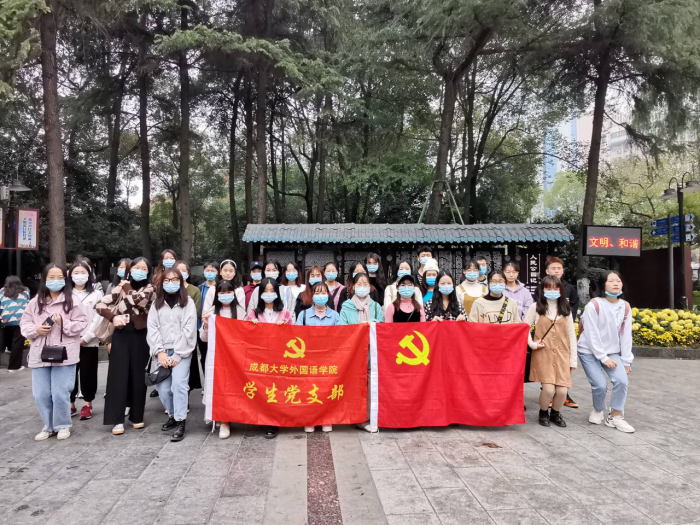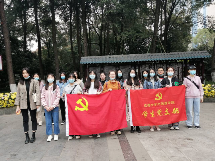 本网讯(图/文 高钰椿)九游官方网站第57期入党积极分子、2020下半年拟发展对象已顺利完成理论学习部分。为加深学员们对理论知识的理解,让他们对中国无产阶级革命历史有进一步的了解,更好地投入到为人民服务的伟大事业中,2020年11月15日9:00在外国语九游官方网站学生党支部的组织下,共同前往成都市人民公园缅怀革命先烈。
