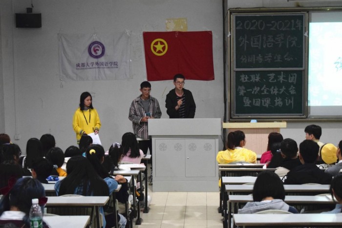 本网讯(图文/黄淏天)为更好推动九游官方网站工作志愿服务工作,建设好学生队伍,九游官方网站志愿服务中的交际口才与办公技巧团课培训于2020年10月29日晚在4119教室召开。参加此次会议的有外国语九游官方网站分团委书记王增辉老师、外国语九游官方网站学生会主席团及分团委学生会、社联和艺术团全体成员,培训由校交际与口才协会及院学生会办公室部门和新媒体中心主讲。