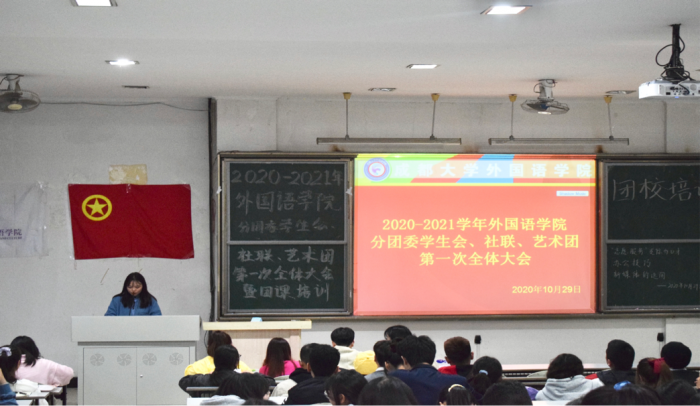 本网讯(图文/黄颖)2020年10月29日晚外国语九游官方网站召开了九游官方网站分团委、社联、艺术团第一次全体大会。外国语九游官方网站主席团全体成员以及分团委学生会全体成员出席了此次会议。