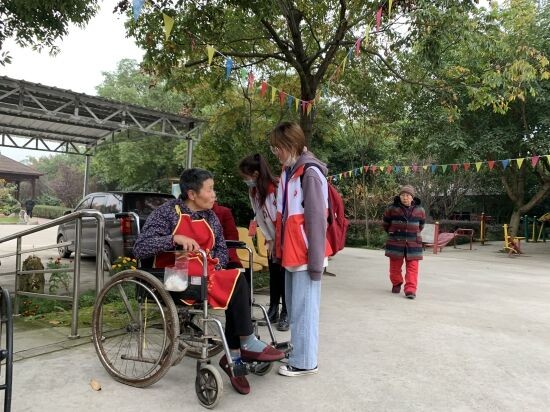 初冬来临,寒冷的气温并没有降低志愿者们的热情,早上7时40分集合完毕后,我们乘坐219路公交车经过50分钟的车程到达了蓉东养老院。经过体温检测,工作人员简单介绍了养老院现状及老人们的生活习惯。志愿者们了解老人们的基本情况后,便分散养老院各地,积极地投入到志愿服务当中。有的志愿者推着轮椅,陪行动不便的老人欣赏路边的风景;有的志愿者陪在老人身边,聆听着老人讲述自己的故事,体味不一样的人生;还有的志愿者和老人下象棋、唱歌、表演节目,欢声笑语充满整个养老院。