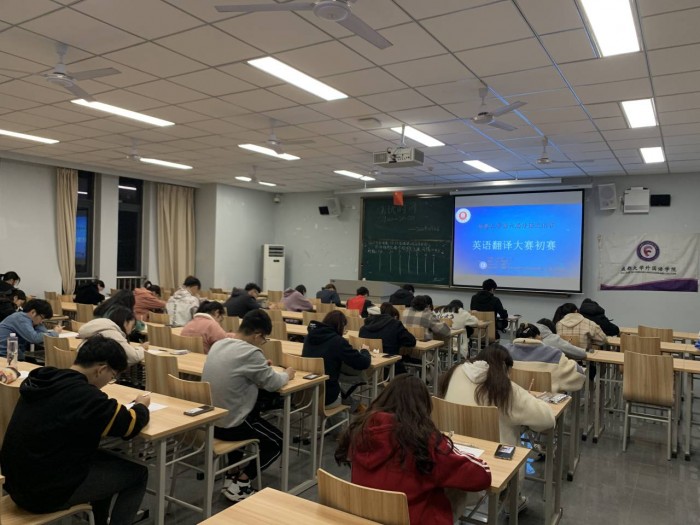 本网讯(图文/刘佳乐)为了更好地为即将到来的大运会做准备,提升学生外语能力,展示本校学生的风采,带动本校学生学习英语的积极性,2020年11月4日晚7:00–9:00,外国语九游官方网站在综合楼举办了英语翻译大赛初赛。本次竞赛由共青团成都大学委员会主办、外国语九游官方网站承办。