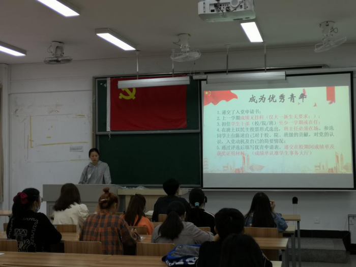 首先,先锋队干事姚阳进行大会主持。为帮助20级新生联络员更好地明确自身责任、对接班级工作,姚阳先简单介绍了联络员及先锋队工作内容,再以此引出党员发展流程的过程及相关事项。接着,姚阳向各位联络员强调了入党申请书的书写格式及注意事项,并要求大家认真做好记录传达于各班同学。最后,姚阳也向17-19级的联络员转达了经党委批准修改后今年评选优秀青年的新标准,说明情况及具体要求,并确定好各班可发展的人员数量,以便各班进行后续工作。例会结束,先锋队干事也积极、认真地回答个别联络员的疑问。
