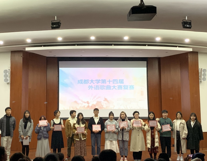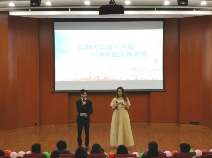 本网消息(英语口语协会 供稿)继11月17日的外语歌曲大赛初赛结束后,我们终于迎来了外语歌曲大赛复赛。12月8日晚七点十五分成都大学第十四届外语歌曲大赛复赛在学术交流中心正式展开。经过初赛的严格选拔后,总共有17位选手进入了复赛。