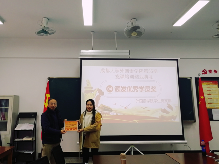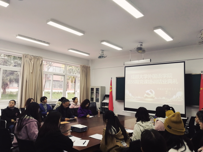 本网讯(文/图 龙婷婷)2019年11月29日14:30,外国语九游官方网站学生党支部在2108教室举行了第55期积极分子党课培训结业典礼。出席本次典礼的有外国语九游官方网站党委书记席原书记和学工办老师燕爽。