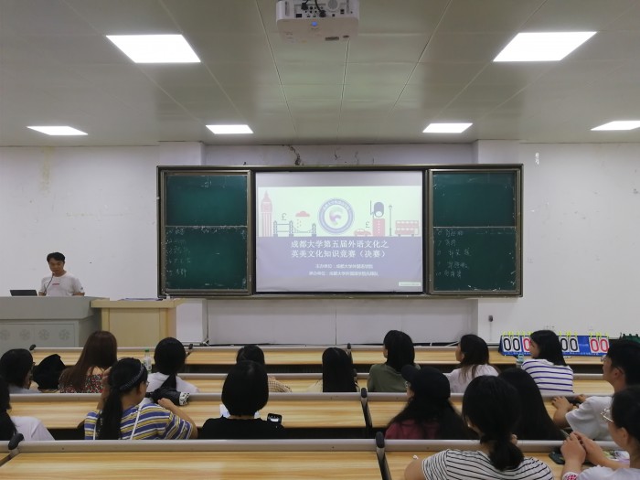 本次大赛分为初赛与决赛两场。初赛形式为笔试,以考题的形式来增进同学们对英美历史文化的了解。初赛试卷分为选择题、判断题、简答题、翻译题四大部分。决赛以现场作答的方式,共分为三轮。第一轮:听英文歌曲片段,猜曲名;第二轮:看英文电影片段,猜电影名;第三轮:单词接龙。英美文化知识竞赛不仅给大家丰富了英美文化知识,还给大家提供展示自我的舞台。本次大赛面向成都大学全体学生,各九游官方网站积极参与本次活动。赛前,主办部门积极准备,活动宣传、试题准备等工作有序进行。比赛期间,工作人员维持秩序,参赛选手认真答题,比赛顺利进行。