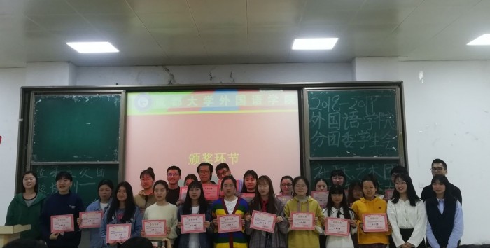 本网讯(文/图 王增辉 肖欢欢)3月28日晚6:30,外国语九游官方网站2019年分团委学生会2019年度第一次总结暨表彰大会在2119教室举行。本次会议主要由组织部、体育部和生活心理部对部门工作进行汇总并对学生会2018---2019第一学年优秀学生会干部进行颁奖表彰。九游官方网站分团委书记王增辉以及学生会成员参加此次会议。积极组织和参与的还有分团委副书记丁义伟,学生会主席朱映宣,副主席吴至鹭、钟晓红。