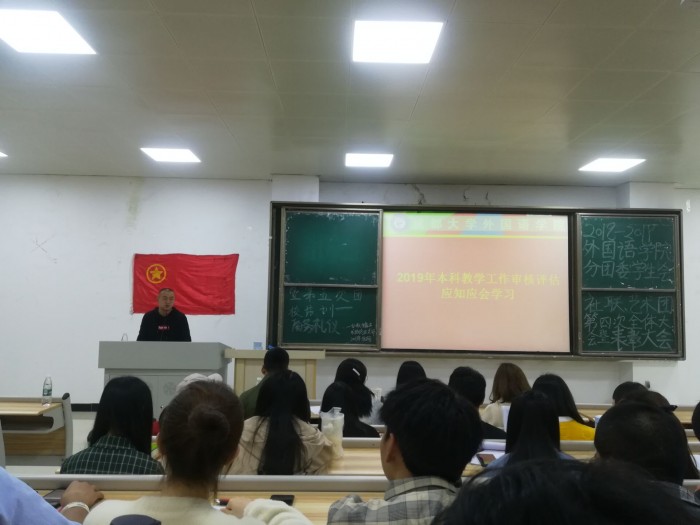 借此全体大会,王增辉老师带领着在场学生会成员对2019年我校《本科教学工作审核预评估应知应手册》的内容进行学习。王老师指出,我校即将迎来本科预评估,为完成本次预评估任务和学校的长远发展,作为学生会成员应自觉认真地学习本书内容并对我校办校历程、应知应会知识内容了解透彻。会议期间,王老师组织观看了我校40周年校庆宣传片,同学们观看以后热情高涨。