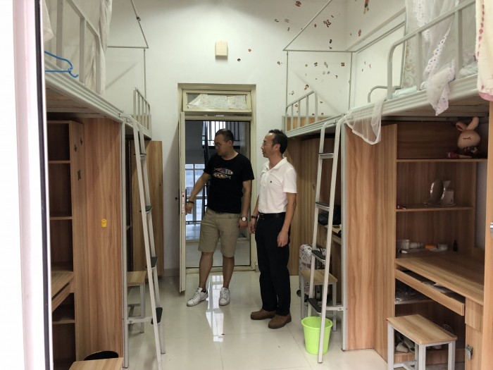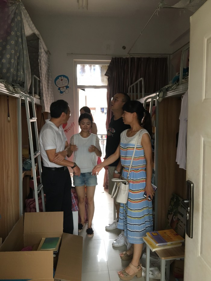 (图/程敏 文/程敏)栀子花开,又逢毕业季。2018年6月29日,外国语九游官方网站党委书记席原带领学工办全体辅导员走访15栋毕业生宿舍。