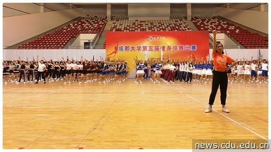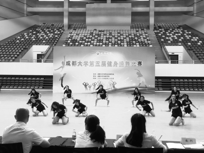 校网消息(文/王鑫 图/西苑 熊恒)5月29日晚,成都大学第五届健身操舞比赛在体育馆举行。校党委副书记、纪委书记、校体委主任易贤文,副校长赵钢,副校长彭晓琳到现场观摩比赛。14个参赛单位,21支参赛队,220余名运动员参与比赛角逐。