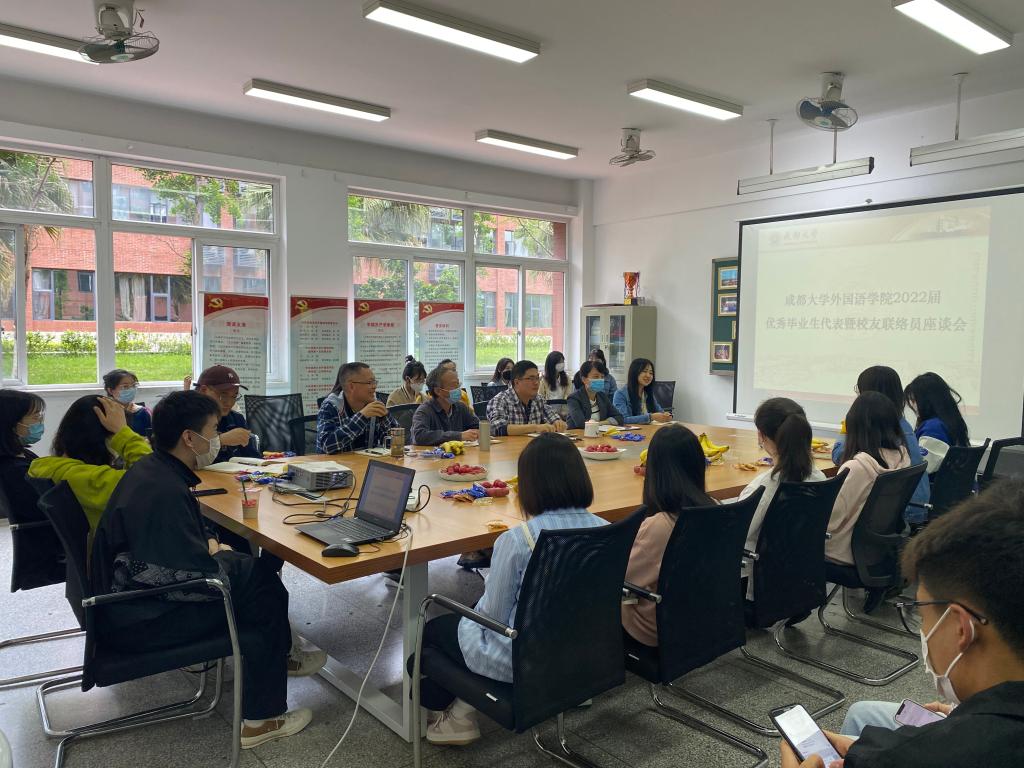 本网讯(图/朱映宣,文/裴天凤)5月18日下午,外国语九游官方网站2022届优秀毕业生代表暨校友联络员座谈会在2106圆满举行。九游官方网站党委书记席原、副书记张亮、副院长杨儒平、学工办主任龙波宇、毕业班班主任王增辉、校友工作辅导员裴天凤及2022届优秀毕业生、校友联络员参加本次座谈会,副书记张亮担任主持。
