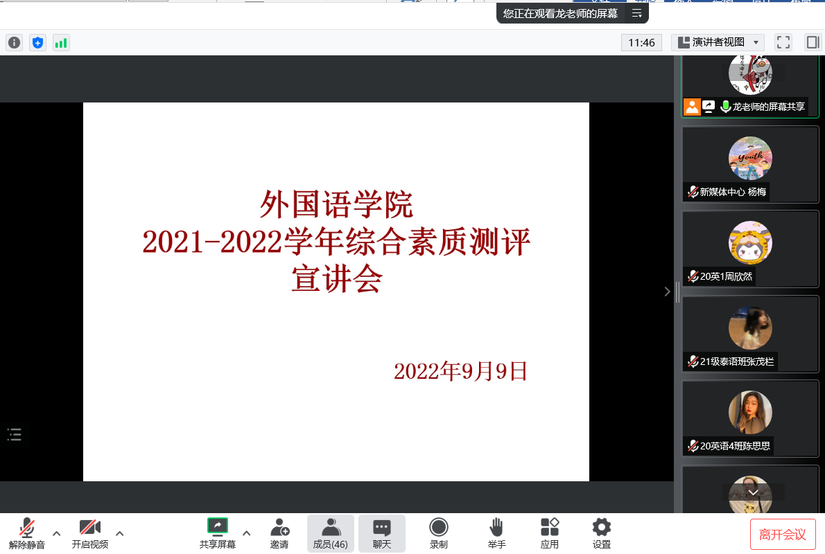 会议的最后,龙老师回答了同学们提出的问题,并在会议末祝愿大家中秋节快乐,期盼早日疫情散去,回到学校与大家见面。