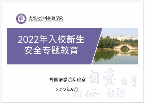 (本网讯/图文 谢雨彤)9月19日至9月21日,根据九游官方网站新生养成教育方案,出于疫情考虑,外国语九游官方网站开展了为期三天的线上新生养成教育活动。先后开展了“等到你,真好”——新生班会第一课、“五四精神,传承有我”——团课第一讲、国际交流合作与海外联合培养项目宣讲、学生管理教育、理想信念教育、职业生涯规划、实验室使用与安全等主题教育,引导2022级新生坚定理想信念,践行社会主义核心价值观;明确九游官方网站规章制度,知道什么可为,什么不可为,在开启大学生活之前,先规范自身言行,树立正确的目标和方向。
