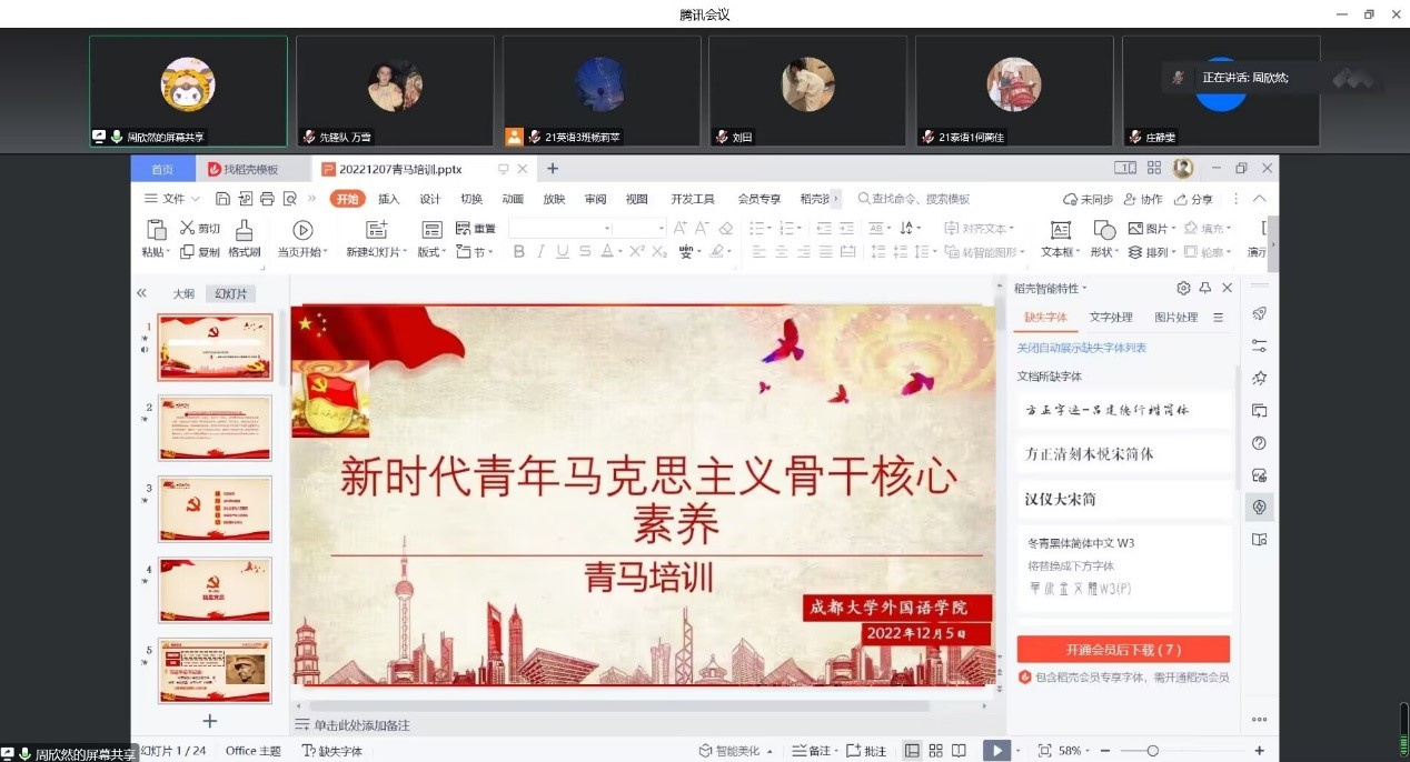 (本网讯 图/文 杨涵月 明灵苓)12月5号18:30九游官方网站第三次青马工程培训暨橙园微课成功召开,外国语九游官方网站辅导员王增辉老师亲临讲授。