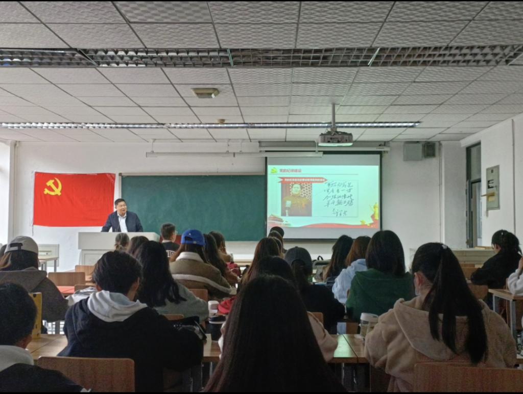党课伊始,陈老师结合甲骨文,用通俗易懂的方式向同学们讲解了“纪律”二字的含义,阐述了纪律与作风的重要性。严明的纪律,能培养和形成优良作风,优良的作风是严守纪律的体现。中国共产党之所以能够从小到大、从弱到强,团结带领全国各族人民走向胜利,一个重要原因就是拥有严明的纪律,优良的作风。