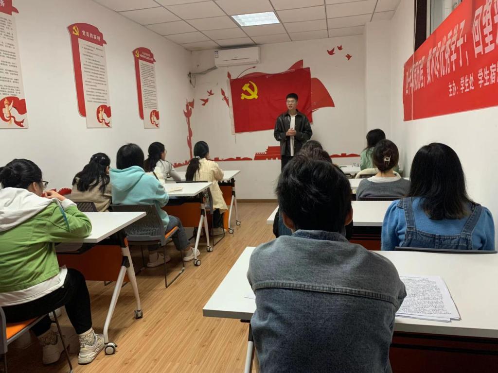 在接下来的分享中,刘鑫宇同志向积极分子们介绍了自己在大运村从事的语言服务方面的工作。在志愿服务期间,他耐心回答大运村运动员及相关工作人员的问题,帮助他们办理相关手续,无论人流量有多大,他都不曾懈怠,始终坚持党的路线、方针、政策,将党全心全意为人民服务的宗旨铭记于心,实践于行。同时,他表示在大运村工作期间受益颇多,并鼓励同学们要积极参与到志愿活动中,拓宽视野,增强社会责任感,提高综合素质,进而为社会主义建设出一份力。