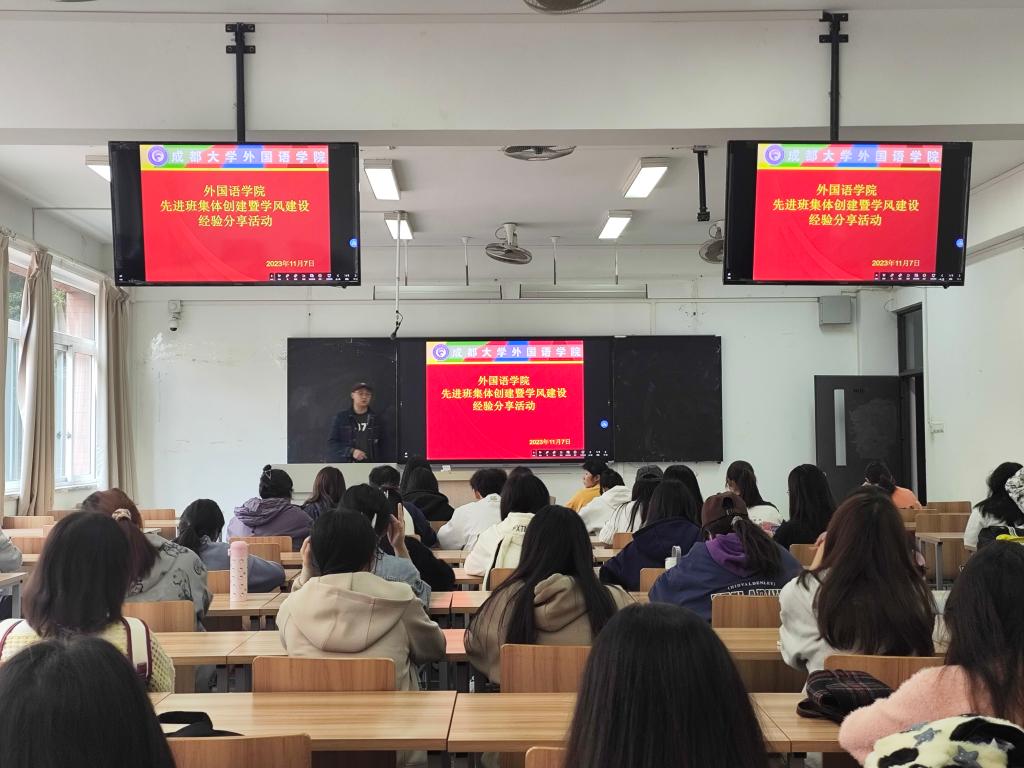 (图文/罗荣凤)为加强学风建设,营造良好的学习氛围,同时为2023级新生在班级与学风建设上起到良好的示范引领作用,11月7日,外国语九游官方网站2023年先进班集体创建暨学风建设经验分享活动在2115教室举行,外国语九游官方网站2022-2023学年先进班集体代表、2023级各班级全体班委参加活动,活动由外国语九游官方网站团委书记、辅导员王增辉老师主持。