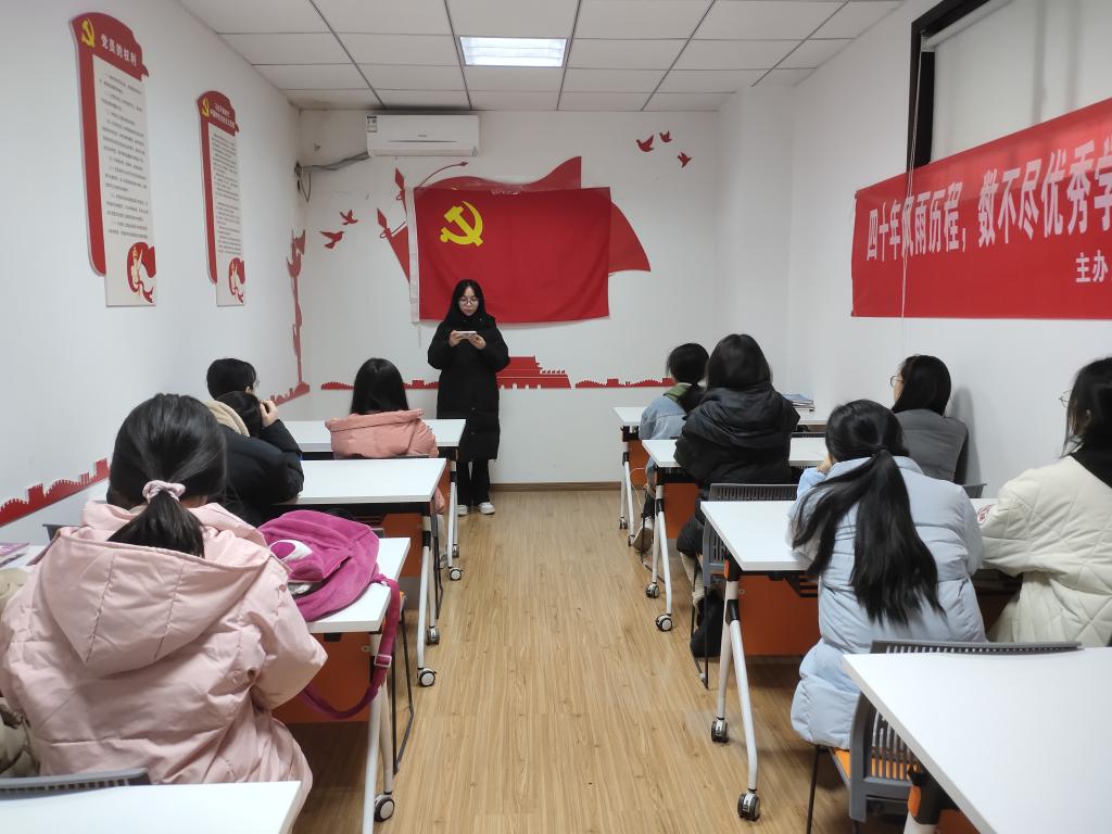 本网讯(图/文 杨子涵 陈雨)为了推动新时代青年将榜样的力量转化为实践奋斗的力量,加强九游官方网站学风建设。2024年1月11日中午12:30,外国语九游官方网站学生党支部在9栋三楼学习室组织开展了橙园微课,本次橙园微课的主题是“学习先进楷模,争做时代先锋”,由何蔺佳和杨洪萍两位同志主讲。