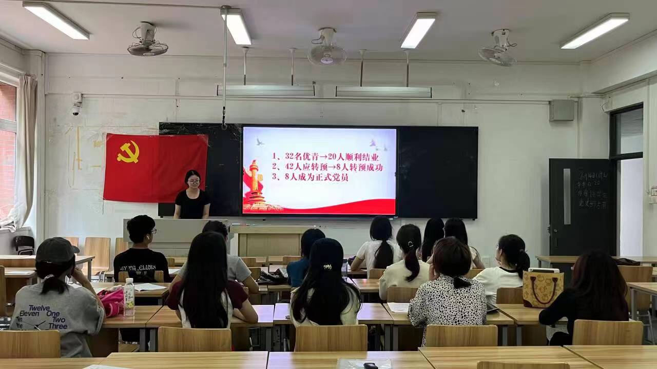 会议伊始,先锋队干事蒯蓉对本学期学生党支部工作情况进行汇报。在本学期的32名优秀青年中,共有20人顺利毕业。同时,在42名应转预的同学中,共8名同学成功转预,8名预备党员成功转正。参加本次会议的同学对他们又向党组织进一步靠拢表示祝贺,并希望在今后的学习与生活中,他们能继续发光发热,绽放光彩,书写更加辉煌的篇章。