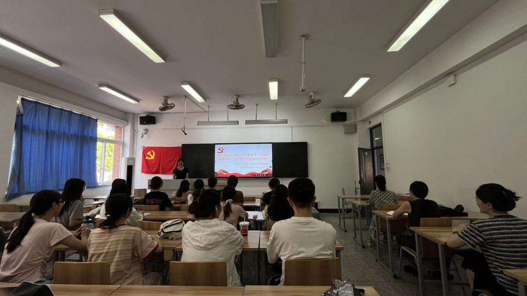 随后,李昊锦同志围绕学习党的二十届三中全会精神,发展教育家精神展开分享。李昊锦同志提到教育是国之大计、党之大计,教育、科技、人才是中国式现代化的基础性和战略性支撑,我们应当不断发展自我,响应国家人才发展战略和科教兴国战略,为国家和社会的发展做出自己的贡献。作为外语学习者,我们应当更多的将“外语+”融入自己的学习中,不断提升个人能力,深化语言运用,强化文化交流。