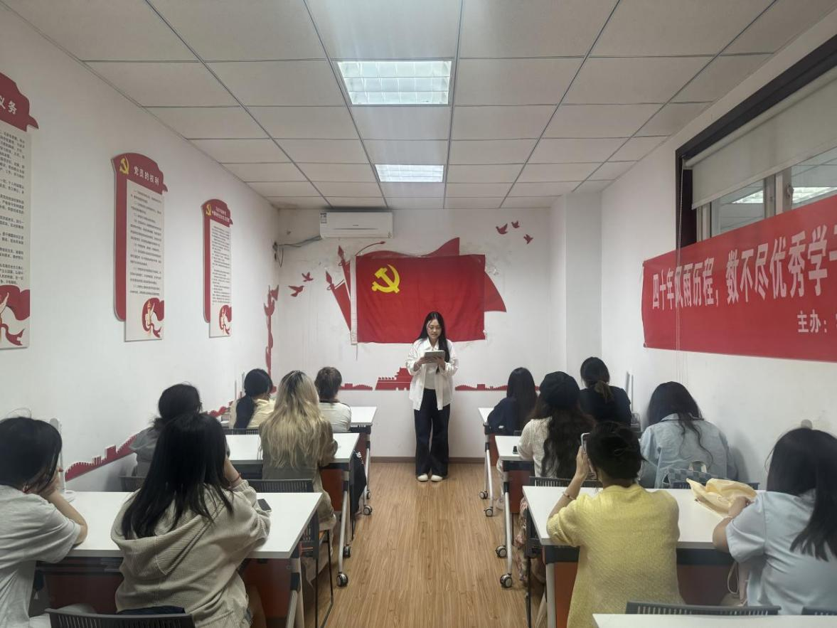 随后,学生党员吴思思同志以历史为脉络,阐述了铭记百年奋斗历程对当代青年的重要意义。她通过回溯鸦片战争、辛亥革命、五四运动等重大历史事件,深度剖析中华民族在屈辱中觉醒的艰难历程。随后,吴思思同志以革命先辈浴血奋斗的事迹为例,揭示了理想信念是青年成长的精神之 “钙”。她呼吁在场的积极分子坚定马克思主义信仰,在新时代继承先烈精神,肩负起民族复兴的使命。