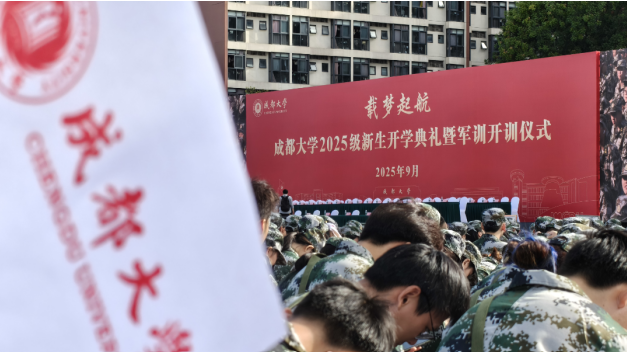 开训仪式上,同学们着装规范,排坐整齐,手中拿着成大的校旗,当整个操场校旗翻飞只是,红白点缀与军绿底色相映衬,恰是青春最靓丽的模样。仪式上,领导们给予新生们殷切希望,知名校友分享经验的同时告诉成大学子们光明的未来正翘首以盼着大家的到来。这一刻,作为成大学子,作为新生一员,我深深体会到了“载梦起航”重量,意识到新时代青年就是要奋楫扬帆,力争上游。
