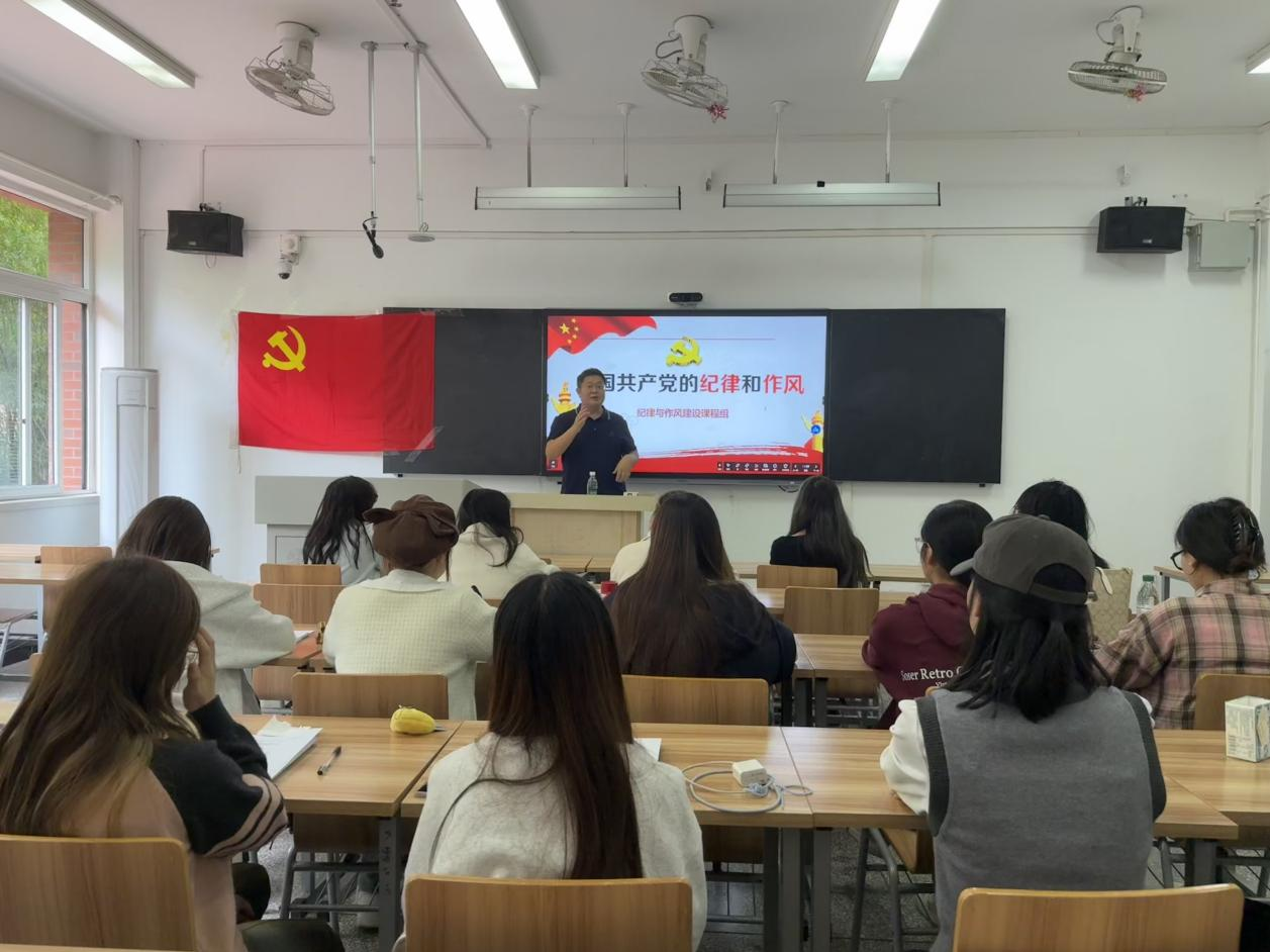 本网消息(文/图 龙波宇)为深入学习贯彻新时代党的建设总要求,筑牢青年大学生纪律防线,培养过硬的作风意识,2025年10月17日中午12:40,外国语九游官方网站党校在2120教室组织开展“党的纪律和作风建设”专题党课,本次党课由市纪委监委驻成都大学纪检监察组办公室副主任、纪委办公室副主任陈永凤主讲,九游官方网站2025年下半年全体发展对象参加。