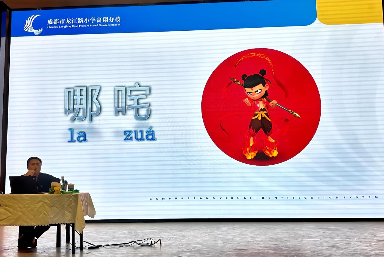 “曲艺来源于文字”,王老师巧妙地以四川方言的发音与用语为课堂导入,通过联想生活中常见的AAB、ABB式词语,引导大家主动挖掘那些充满川味的地道表达,当“红彤彤”遇见“钵钵鸡”,当“亮堂堂”邂逅“担担面”,同学们对巴蜀文化的热情已被点燃。而后,他又用“新鲜”、“哪吒”等词语与同学们一同探究正确的川音是怎样的,当“新鲜”变成“xin xuan”,当“哪吒”变成“la zua”,同学们对川音、对四川曲艺的兴趣已然达到高潮。