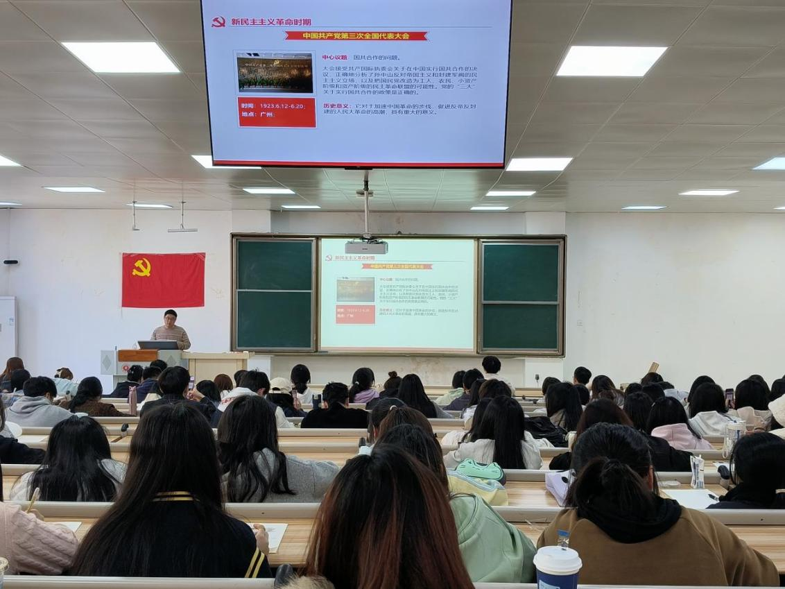 党课伊始,张亮老师强调了学习党史的重要意义。中国共产党百年奋斗积累的正反两方面经验是宝贵的财富,学习党史既是把握规律、把握未来的理论学习,也是坚定信仰与方向的党性教育。随后,张亮老师带领大家回溯党史。新民主主义革命时期,党领导人民艰苦斗争,推翻“三座大山”,建立新中国;社会主义革命和建设时期,党带领人民完成社会主义改造,构建起工业和经济体系。进入新时代,在习近平新时代中国特色社会主义思想指引下,中华民族实现了从站起来、富起来到强起来的伟大飞跃。