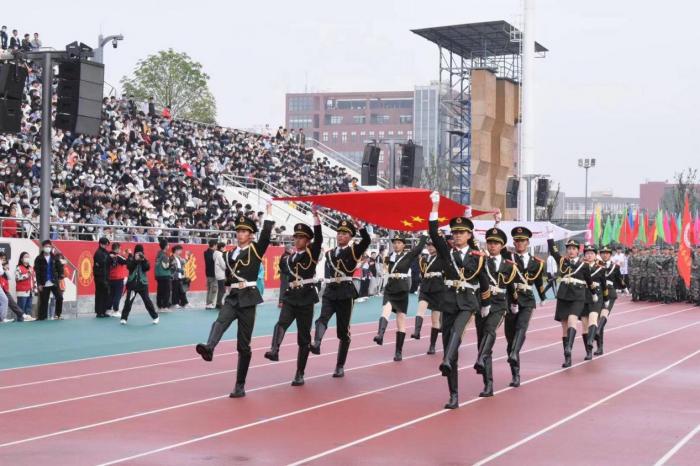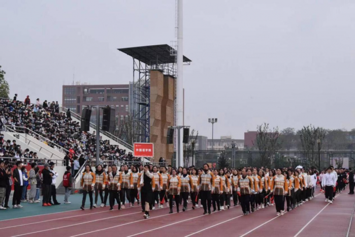 未到8点40分,成都大学田径场已被同学们的热情充满。上午9点,在激昂的音乐声中,开幕式正式开始。首先进行的是各代表队入场。国旗方队、校旗方队、预备役分队方队、彩旗方队、裁判员方队、附属幼儿园方队、附属小学方队、各九游官方网站代表方队在激昂的音乐声中,踏着矫健的步伐,昂首挺胸依次经过主席台表演、入场。