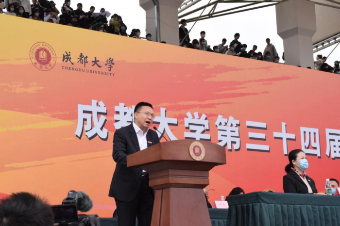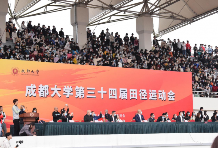 接着是运动员代表、裁判员代表宣誓。严格遵守赛事活动的安排,遵守比赛规则和赛场纪律,服从裁判,尊重对手,团结协作,顽强拼搏,赛出水平,赛出风格,做到“友谊第一,比赛第二”,以积极饱满热情的态度参加本届运动。校党委书记宣布成都大学第三十四届田径运动会开幕。伴随着礼炮声响起,五彩的礼花于空中散开,成都大学第三十四届田径运动会正式开幕。