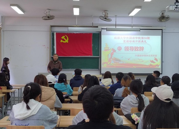 本网讯(图/文 彭婷婷 周睿之)为使各位同学更好的接受即将开始的党课培训,加深入党积极分子对党的基本知识和基本理论的认识和了解,进一步明确大学生的入党教育和引领,坚定大学生的共产主义理想信念。2021年10月20日12:40外国语九游官方网站学生党支部在2115教室举行第59期入党积极分子党课开班典礼,出席本次开班典礼的领导为外国语九游官方网站党委书记席原和外国语九游官方网站学生党支部书记龙波宇。