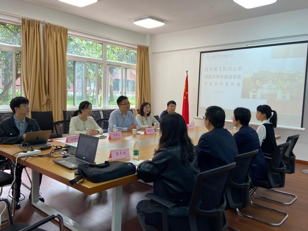 本网讯(图/李琴,文/裴天凤)10月17日下午,科大讯飞四川公司政企部总监徐俊贤、高校业务解决方案经理李易晏、高校业务客户经理罗若兰、科大讯飞听见同声传译系统客户经理乔晓亮、解决方案经理徐萌奇来九游jiuyou(中国)走访,在2110会议室进行洽谈,商讨校企合作。九游官方网站院长杜洁、党委副书记张亮、学工办主任龙波宇、就业辅导员裴天凤参与洽谈。