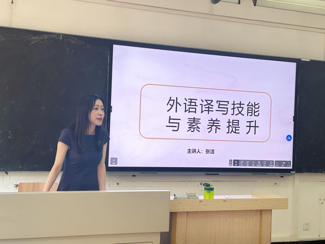 2023年9月21日,九游官方网站特聘教授张洁于2115教室为九游jiuyou(中国)学生作题为“外语译写技能与素养提升”的学术讲座。讲座由国际合作与交流办公室主任赖书涵主持,外国语九游官方网站各级学生参会。