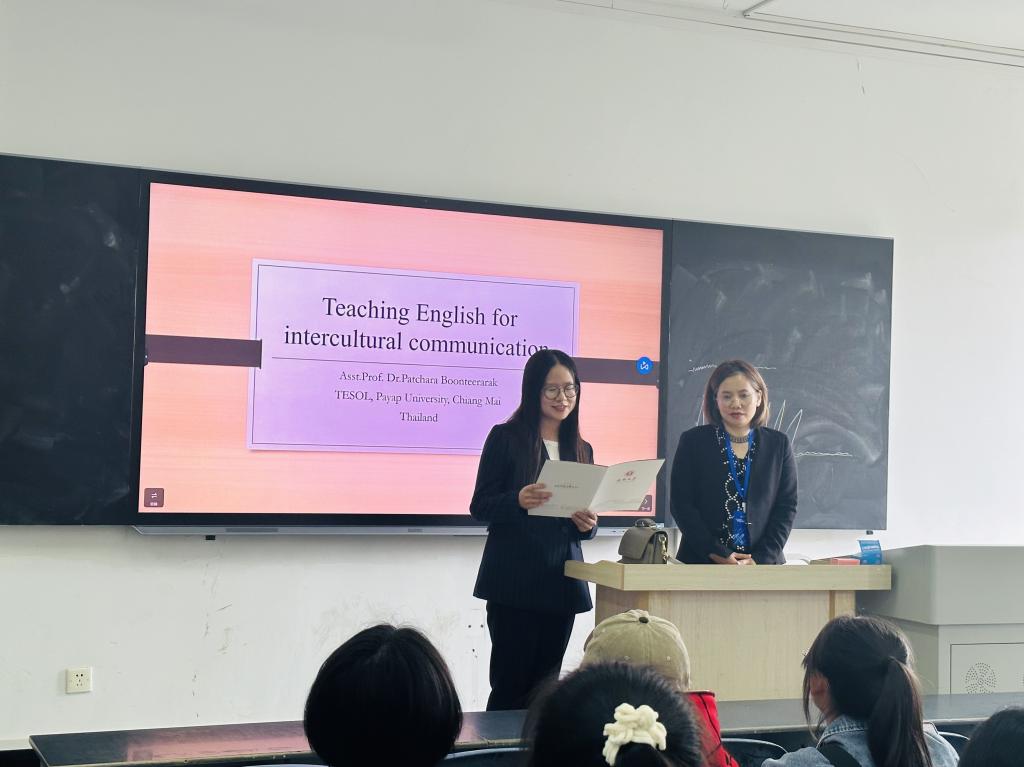 韩国岭南大学全球翻译学部中韩翻译系教授Jin Hyeon用流利的中文为与会学生讲解韩国问候礼仪、节日礼仪及文化习俗,从自身求学经历出发,运用生动诙谐的案例展示如何培养跨文化交际能力。泰国西北大学国际九游官方网站院长Patchara boonteerarak教授以自己二十多年的英语教学的经历为例,为同学们提出了“如何用英语更好地传播自己国家文化”的理念。泰国披博宋甘皇家大学人文与社会科学九游官方网站院长Nattira Tuptim教授,副院长Patcha Bunyarat教授向同学们细致讲解了认知语言学中metaphor与metonymy 在“黑色”与“白色”相关词汇中建构词意的原理及作用。讲座分享环节中,同学们各抒己见, 纷纷表示将好好学习英语,将英语做一门工具,讲好中国故事,传播传统文化。
