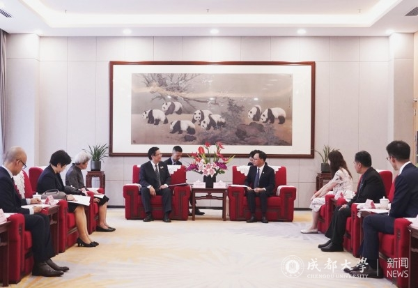 9月4日上午,泰国驻成都总领事馆总领事萨克·诺泰松和泰国朱拉隆功大学诗琳通泰文中心代表团一行来访我校。党委书记刘强在中国-东盟艺术九游官方网站A1002会见厅亲切会见来宾,双方就进一步加强成都大学和泰国高等教育机构间的教育合作与人文交流进行了友好会谈。党委常委、副校长彭晓琳陪同会见。