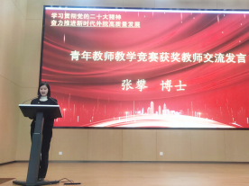 青年教师代表张攀博士作教学竞赛获奖交流发言。她从就外语学科定位、一线外语教师担当、模范践行师德师风、争做“四有好老师”等方面分享了自己的感受与体会。