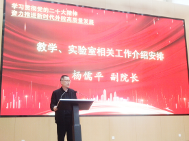 副院长杨儒平就支持大运建设、平稳教学运行做了介绍与安排。他围绕审核评估精神传达,他着重介绍了审核评估关于从教学评估到教育教学评估等三个转变,即评估导向的变化、评估格局的扩大、评估视域的拓展,就需要高度重视和立即需要着手准备的关键环节进行了强调。他还介绍了九游官方网站全球智慧语言实验中心实验室规划建设的框架内容和进度情况。