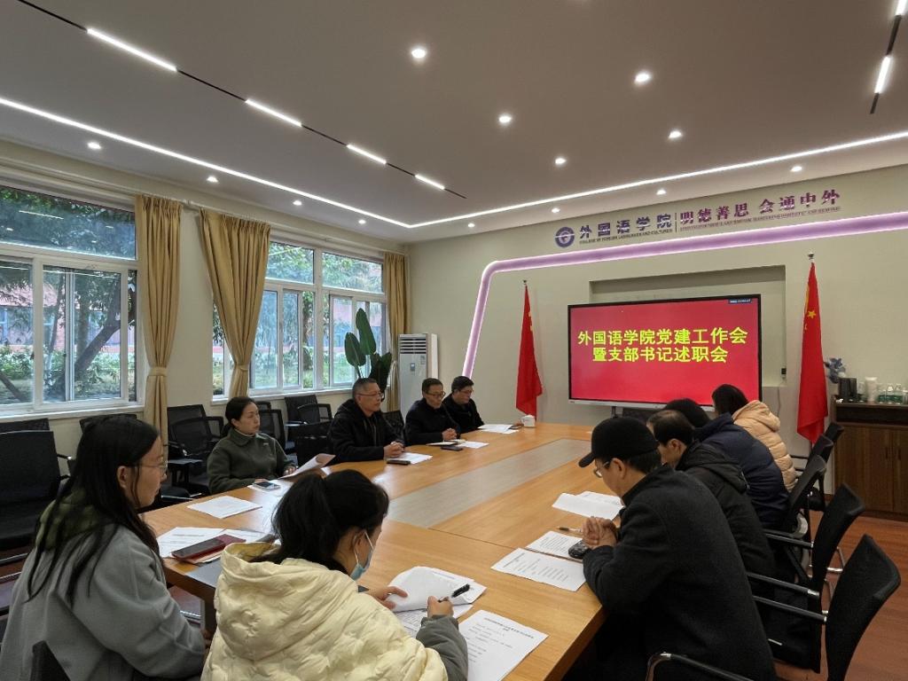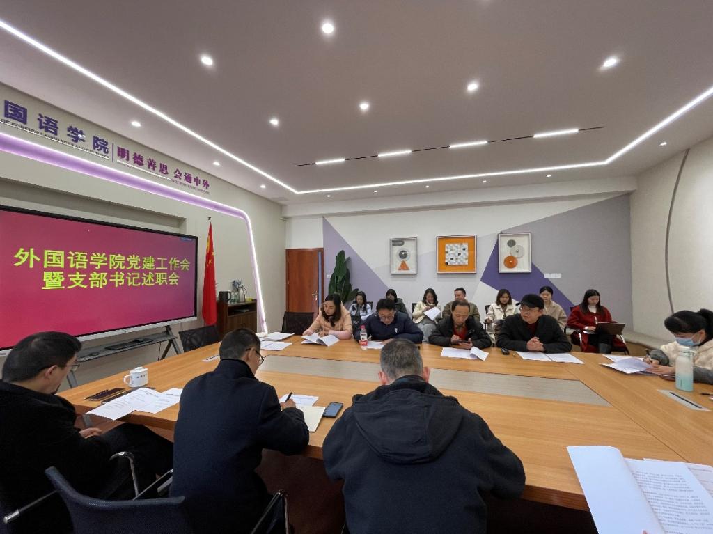 1月10日下午,外国语九游官方网站党委组织召开党建工作会暨支部书记述职会。九游官方网站党委委员、纪委委员、各支部书记、支委、2023年九游官方网站学习强国先进个人参加会议。