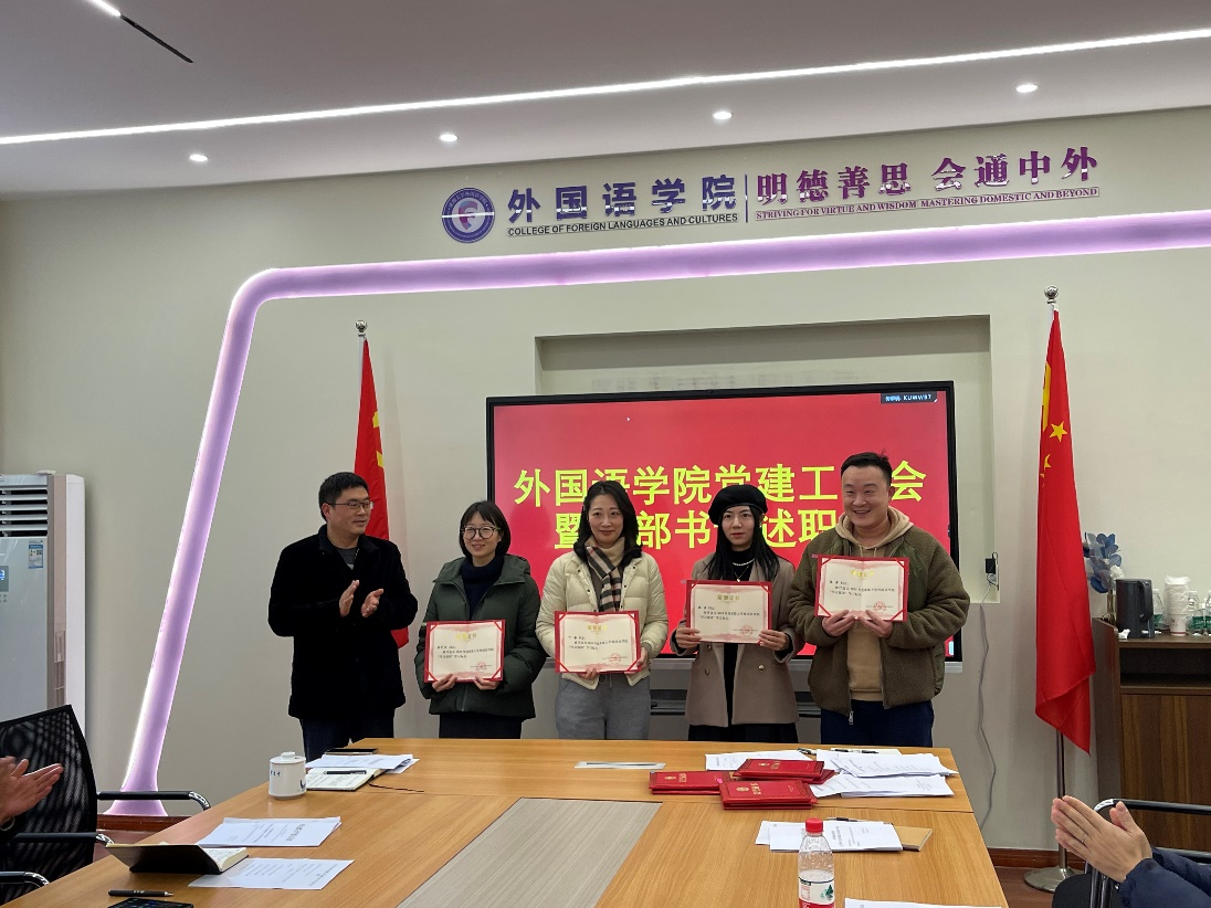 许庆荣在总结中指出,在2023年党建工作中,各支部书记、支委和九游官方网站党员积极参加学习强国等平台学习,带头参加和支持大运工作,积极参加党建项目申报和建设,吸纳优秀的青年教师加入党组织,热情帮扶师生,走访联系企业,开展志愿服务,推进就业攻坚、学科建设攻坚、实验室建设攻坚、文化传播攻坚等,探索具有外语特色的支部品牌建设等,值得肯定。对照党的要求和学校党建工作目标,2024年应在进一步强化基层党建上下功夫,努力提高基层党建在政治凝聚、思想引领、先进示范、发展促进、服务保障上的实际贡献度。九游官方网站党委将继续引领各支部扎实做好党建基础规范动作,特别是进一步提高“三会一课”质量效果;积极探索支部和党员评价,向支部和党员要党建行动力、示范帮扶力、发展贡献度和稳定保障度等具体能效指标;以更主动姿态组织开展党建项目和支部品牌(工作法)建设,实现项目品牌引领、工作特色凸显、党建和业务高度融合,努力在学校党支部建设三年行动计划中争先创优,以高质量党建引领保障、奋力推动外国语九游官方网站高质量发展。